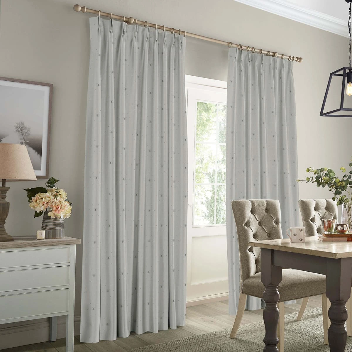 These lovely made to measure curtains will add warmth and elegance to any home. Featuring Sophie’s buzzing bees surrounded by delicate dots on a grey coloured background. Perfect for adding texture and comfort to any home interior.Â