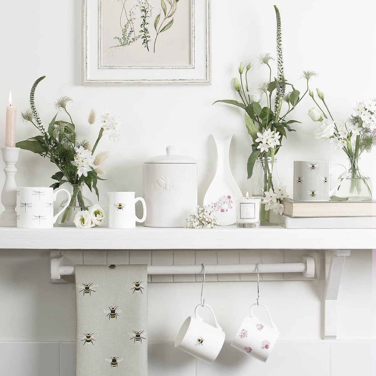 Brighten up your kitchen with a tea towel from our popular Bees collection. Covered in Sophie’s bees on a pale green background, it will make your drying up a bit more enjoyable.