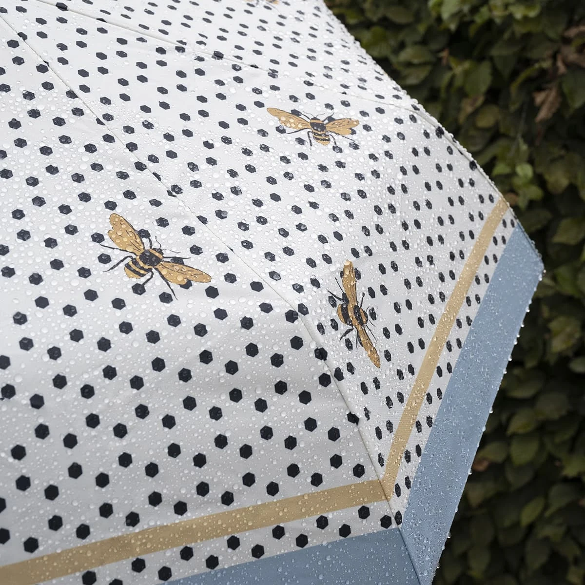 This super stylish umbrella brings a touch of colour to a rainy day, with Sophie’s popular Bees buzzing around on a pretty pale yellow background with black honeycomb shaped detailing. This umbrella features a contrasting light blue trim around the edge and folds down to 28.5cm x 5cm, so is perfect to pop in your bag and never get caught in the rain again!