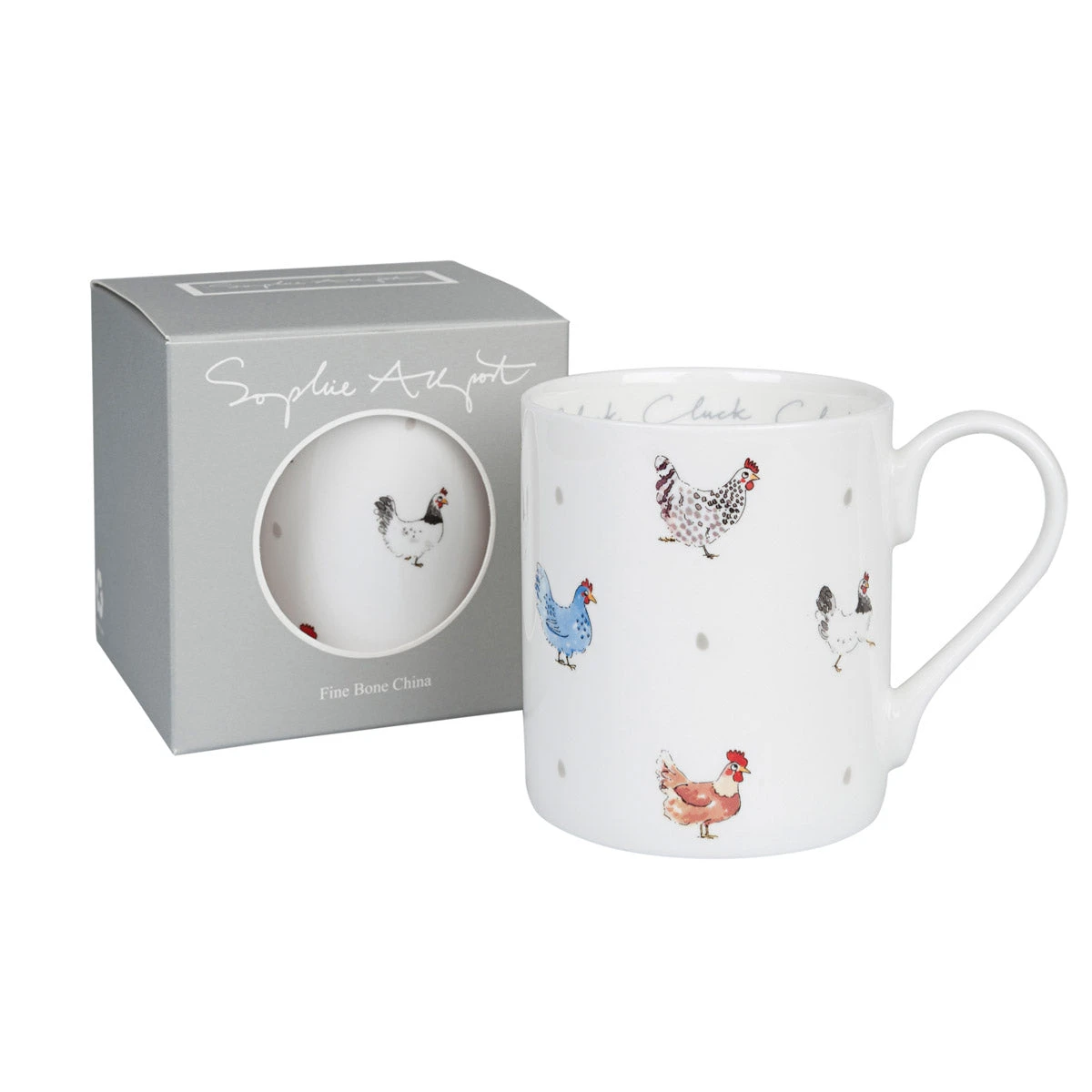 Featuring five different hens, this Cluck, Cluck, Cluck mug is fine bone china and part of our Chicken collection of homewares. It brightens up every cup of tea or coffee and would make a lovely gift for a hen keeper or chicken enthusiast. Perfect Easter gift!