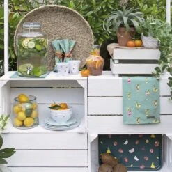 This lovely melamine bowl is excellent for summer picnics, BBQ’s, camping, beach days or outdoor entertaining. A fun and playful design featuring delicious summer fruit with a light blue inner.Â