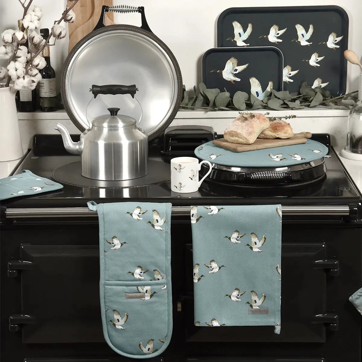 Add a touch of stonewashed blue to your kitchen with this Ducks double oven glove. The reverse of the glove and inside each hand pocket has a polyester thermal layer for extra protection and there is also a handy ‘loop’ in the middle of the glove, so you can hang it up in your kitchen. An excellent addition to add some character and colour to any kitchen.Â