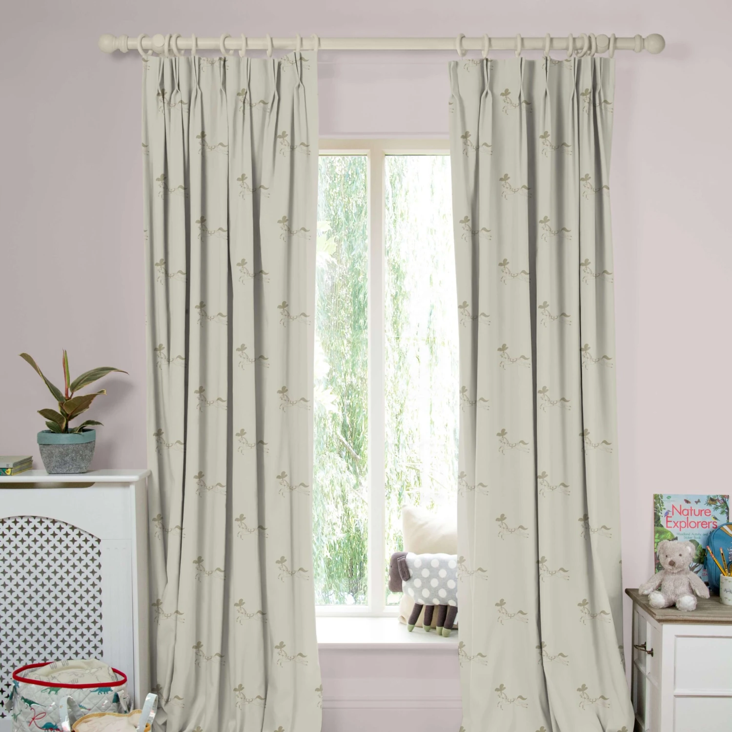 A sweet design that is sure to add a magical touch to any child’s bedroom, nursery or playroom. Covered in gold fairground ponies on a neutral ground colour, these made to measure curtains are perfect for dimming the light for afternoon naps and evening snoozes.Â