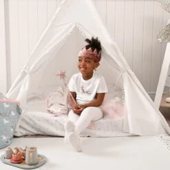 Made from 100% organic cotton, this adorable kids t-shirt has a unique fairground ponies design, made up of different embroidered techniques for a fun and playful look and is finished with magical sequins. This off-white children’s t-shirt is perfect for spring and summer and excellent for kids who love fairground ponies! A lovely gift idea for little ones.Â