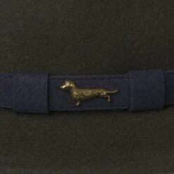 Step out in style with our gorgeous Fetch felt fedora hat. The soft inner lining and 100% khaki green wool felt material give you a comfortable fit you can wear all day long, whilst the genuine navy suede outer band and debossed Dachshund gold rivet adds a touch of style!