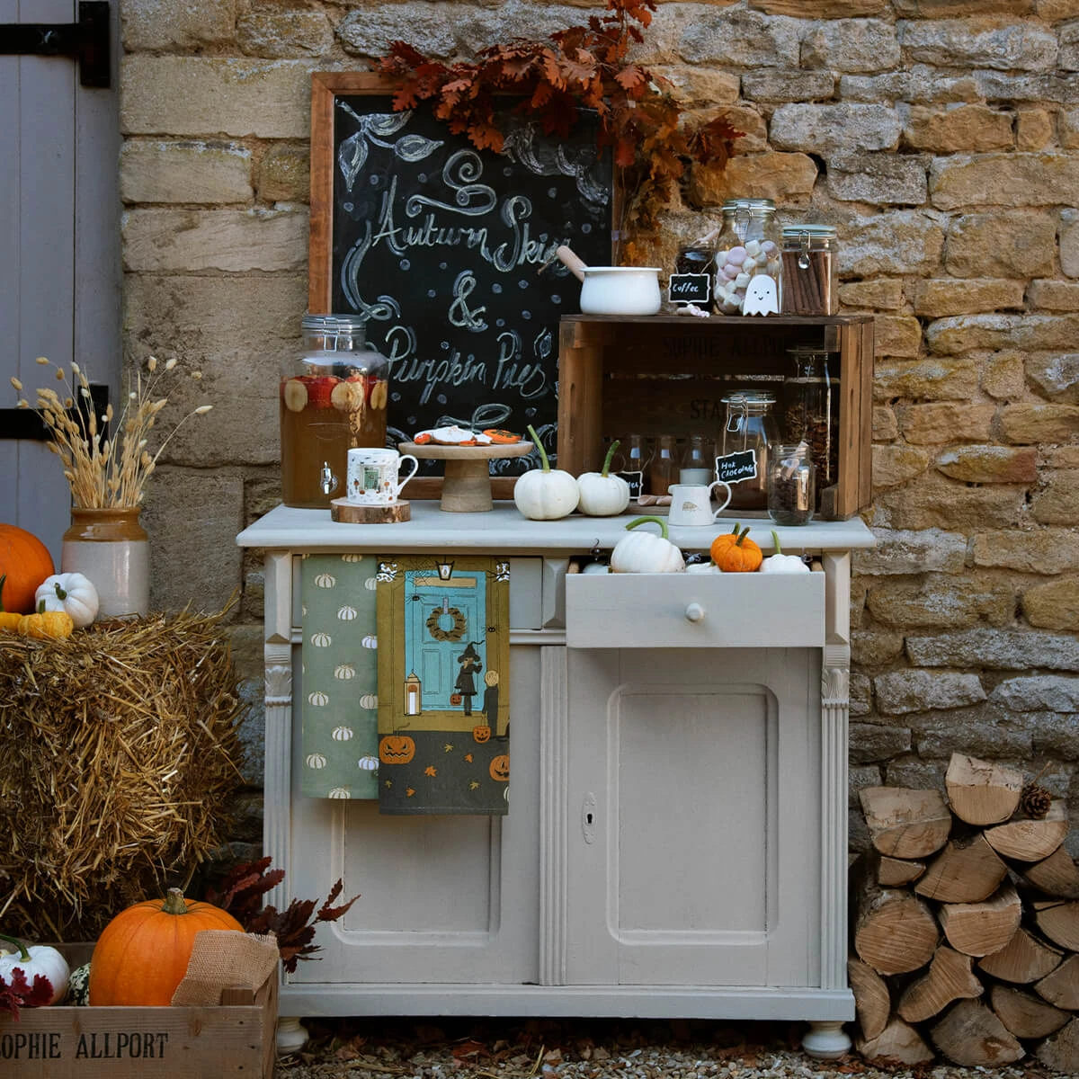 A pair of practical cotton tea towels in Sophie Allport’s Halloween design, perfect for adding a spooky seasonal touch to your kitchen. The first features a nighttime scene of trick or treaters at a spooky house, whilst the second tea towel features white and neutral pumpkins on a stone blue ground. This lovely set makes a wonderful gift idea for someone who loves Halloween!