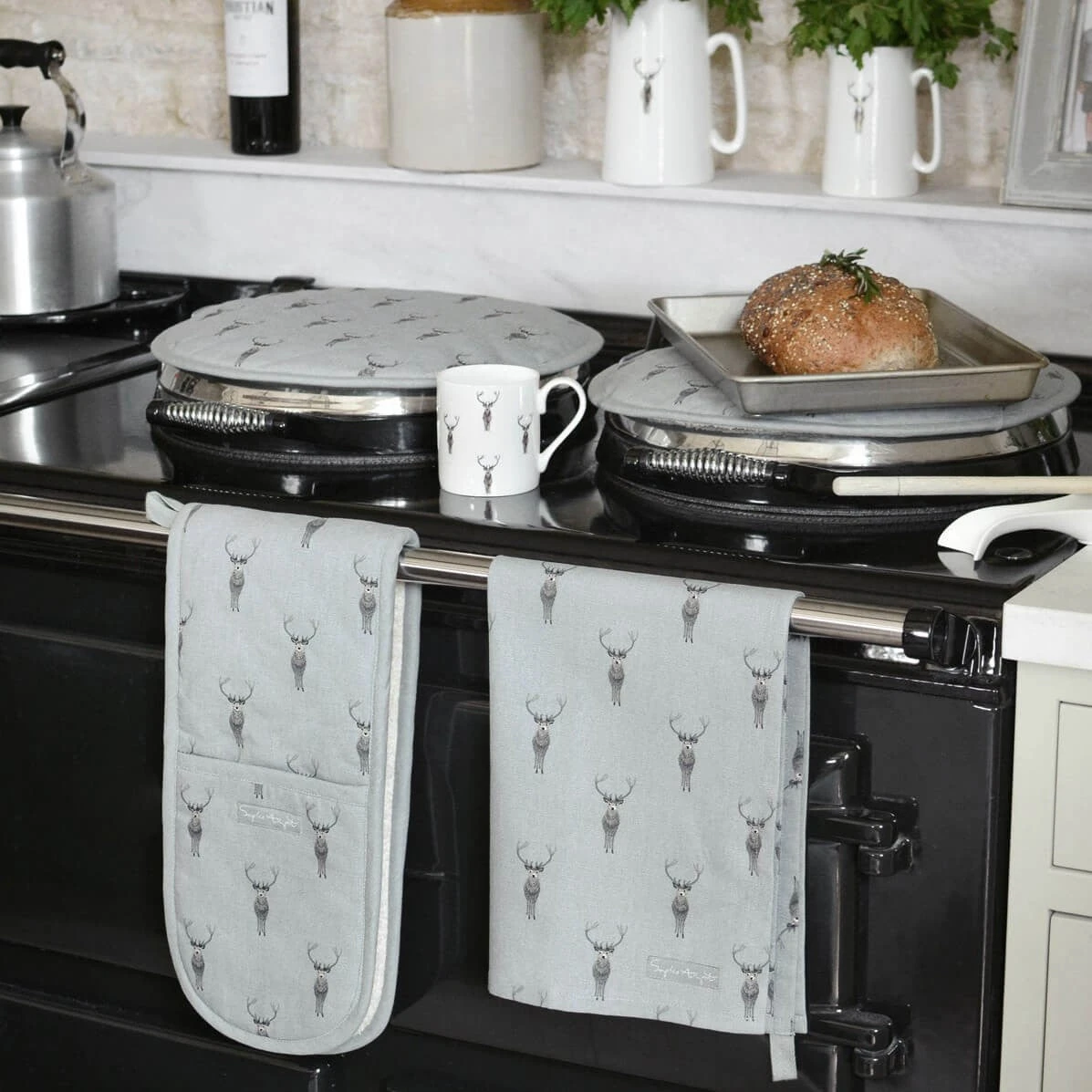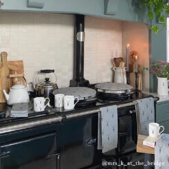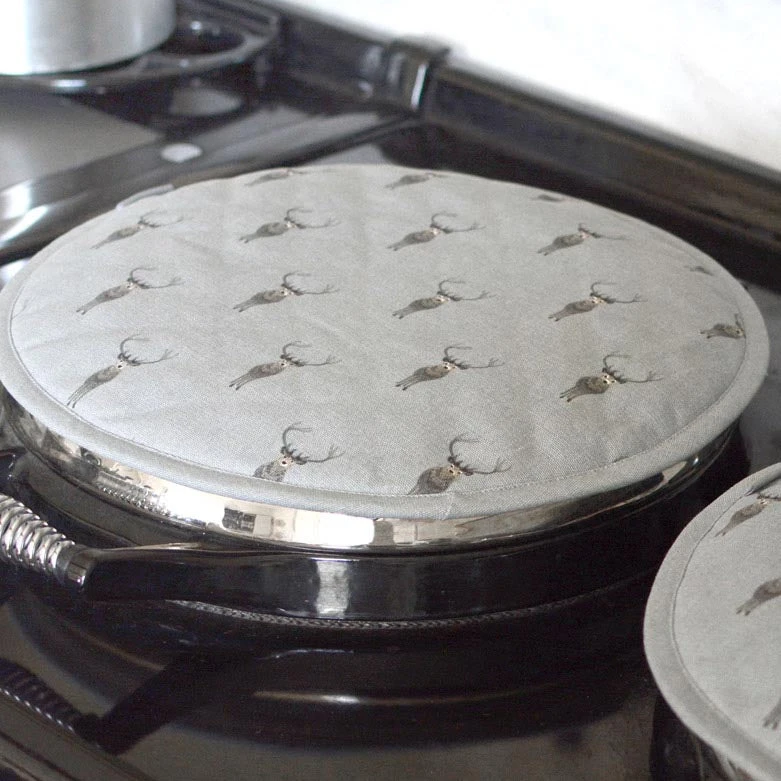 Sold as a single, these lovely hob covers are great for keeping your prized cooker clean and scratch-free. They are also effective at keeping the heat in. Perfect in any country kitchen. The design features magnificent stags on a slate teal coloured background. They will protect the shiny stainless steel lids on your cooking stove hobs. We don’t recommend placing piping hot pans directly onto the cover – they are not ‘heatstands’.