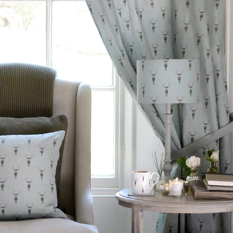 Perfect to brighten up the interiors of any room, this handmade drum lampshade is made from our slate teal coloured Highland Stag fabric. The light shade has an adapter so that it fits all standard UK and EU fittings. The reversible gimble (wire inner) means the shade can be used on a standing lamp, table lamp or hung from a ceiling bulb. The fabric is laminated onto a fire retardant PVC backing and is suitable for up to a 60 watt light bulb. Each shade comes in a clear cello wrapper for protection.