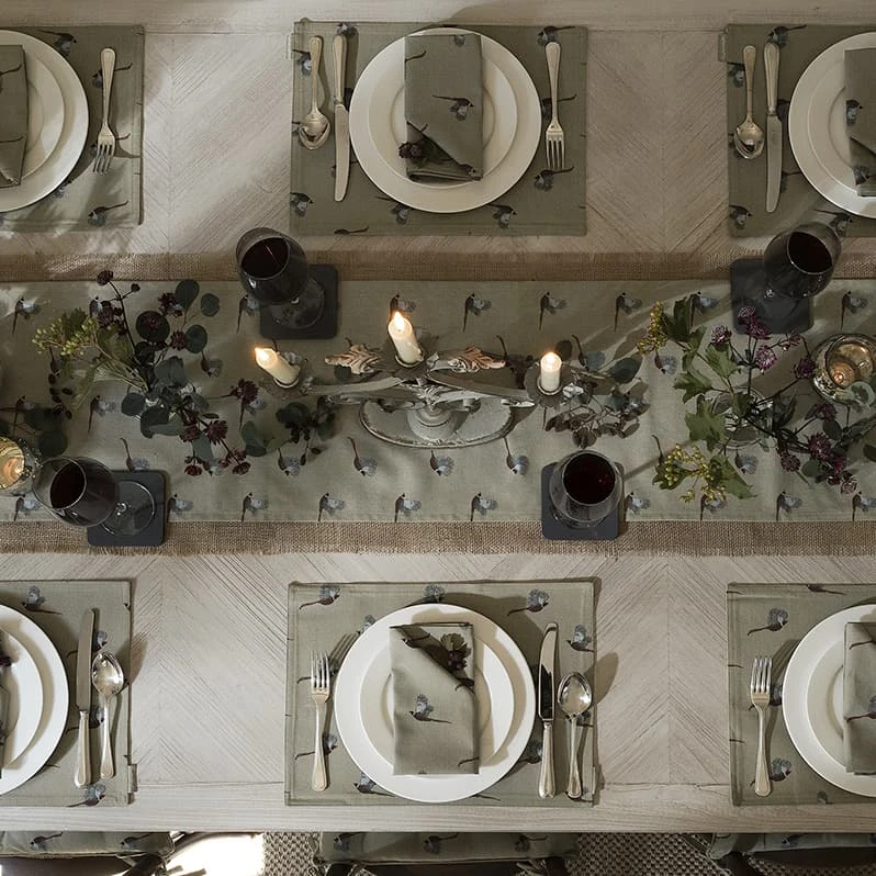 These lovely ‘Pheasant’ cotton napkins come in a set of four and are part of our Pheasant Collection of fine bone china, kitchen textiles, oilcloth, stationery, and other homewares. The design features the magnificent long-tailed male Pheasant game bird flying across a stone green background. Sophie has captured the distinctive rich chestnut, golden-brown and black markings on the body and tail, with a dark green head, red face wattling and white ring around the neck. A lovely addition to any country kitchen or a gift for anyone who collects our Pheasant Range.