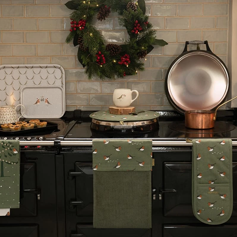 A festive stoneware jug from our classic and timeless Robin design. This large jug is dotted with Robins and mistletoe with an olive green contrasting rim, perfect for homemade gravy on the big day!Â
