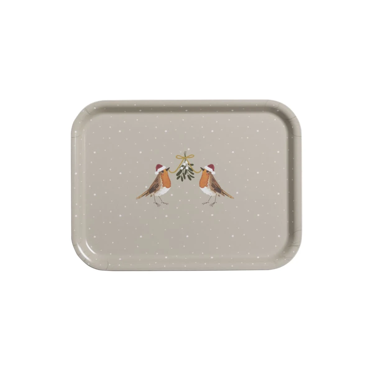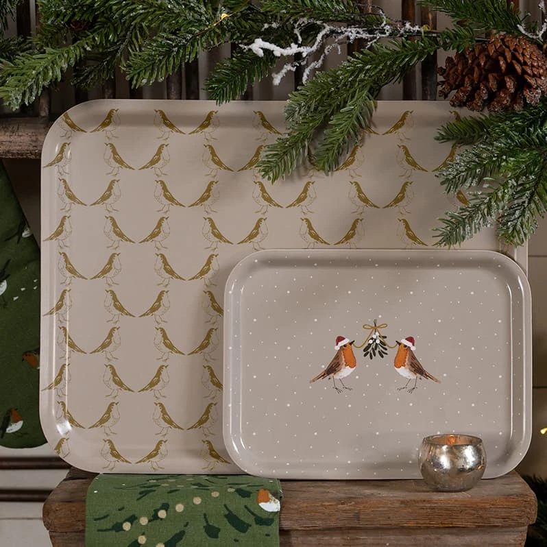 This small, charming Robin printed tray is perfect for festive drinks, serving food or making a lovely Christmas home decoration. Featuring two red-breasted Robins holding a sprig of mistletoe together on a neutral ground. Made with Birchwood sourced from an FSC certified supplier, this tray would make a lovely Christmas gift for a loved one.