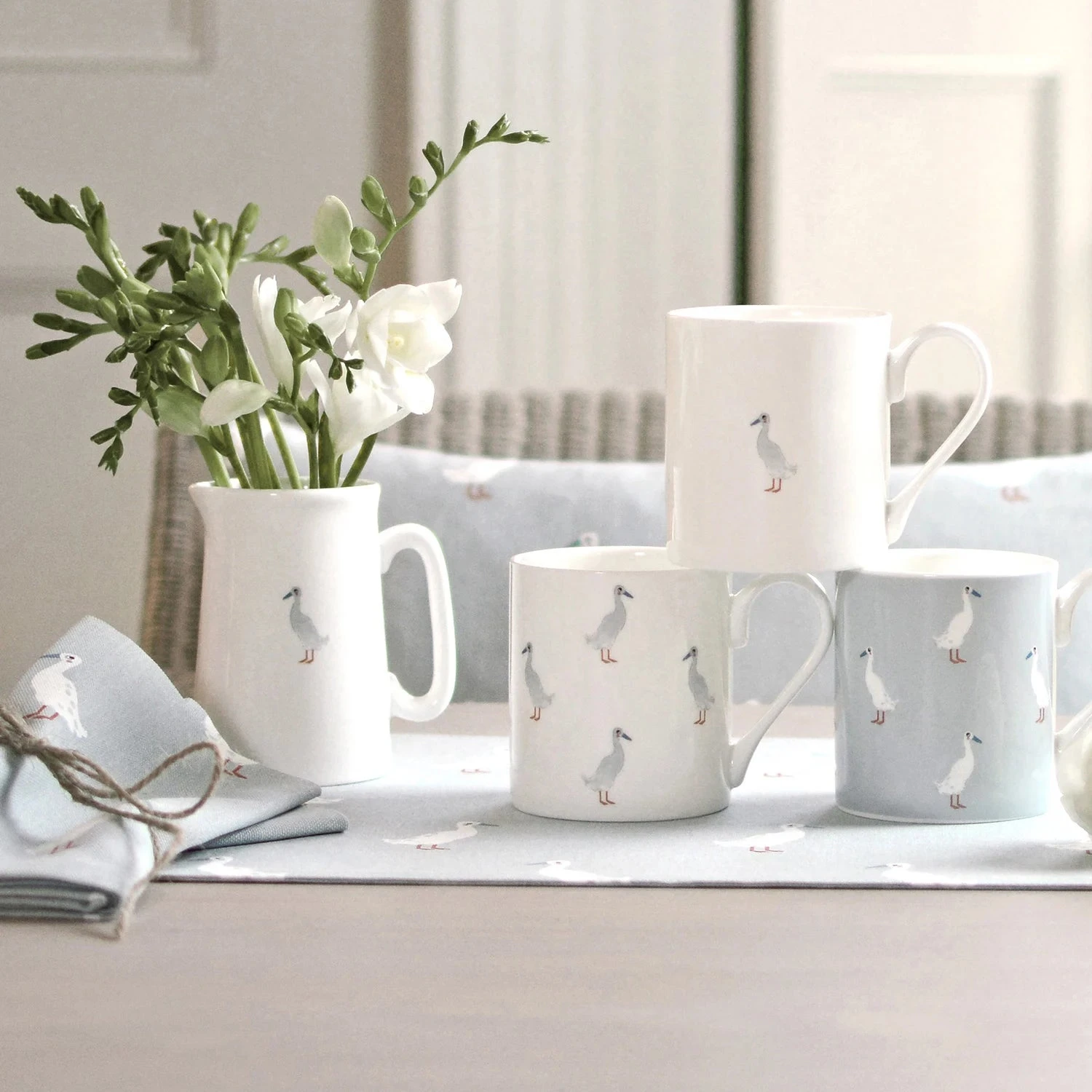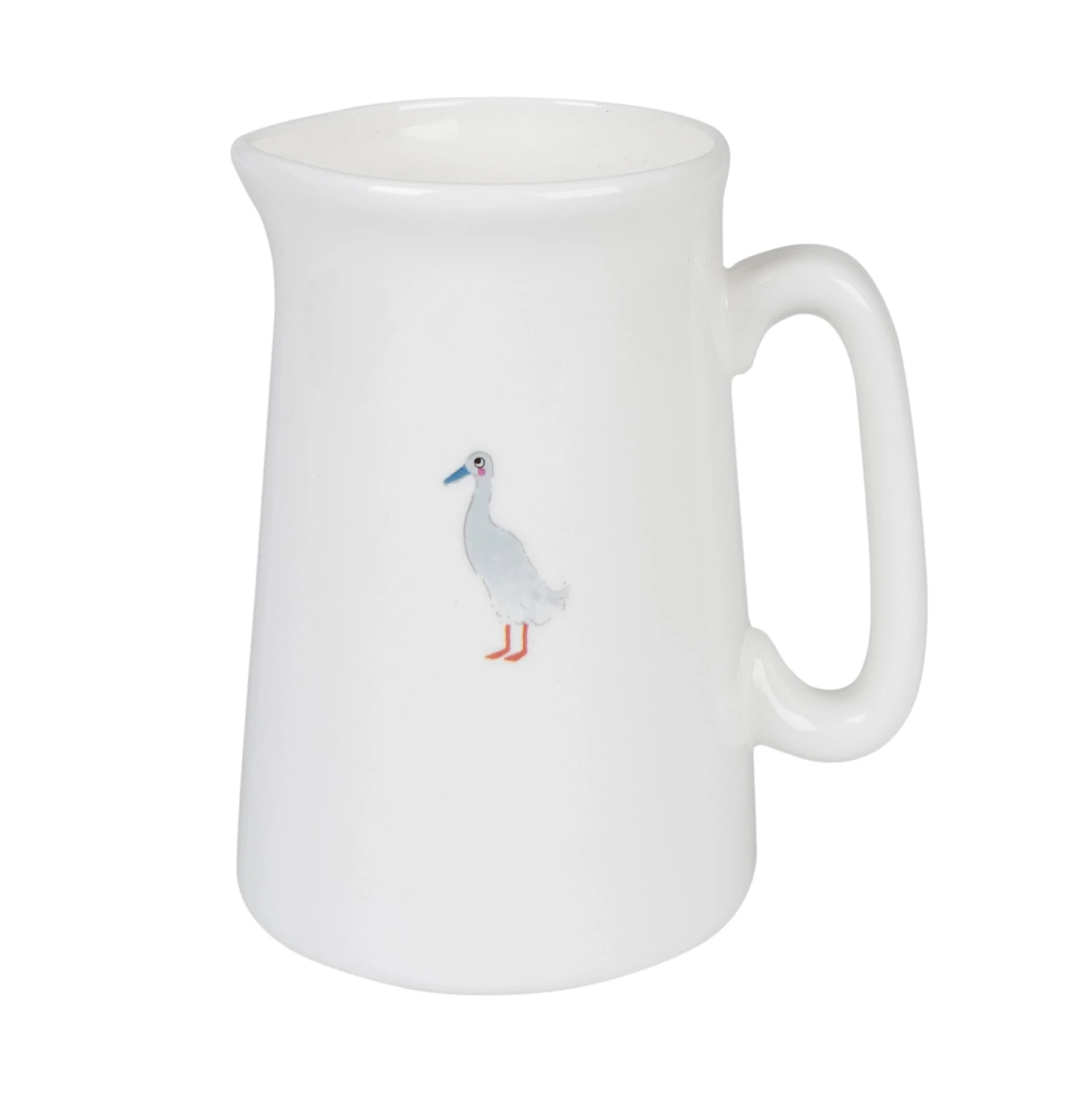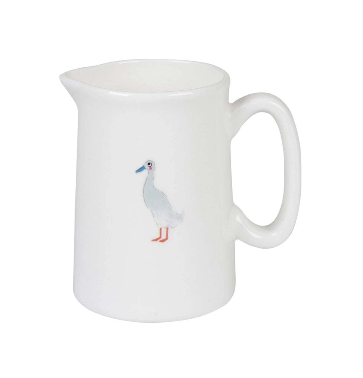 A stylish Runner Duck stands on the front and back of this fine bone china jug. Available in four sizes – mini, small, medium and large, you’ll find the perfect size for milk, cream, gravy, custard, water and chocolate sauce.