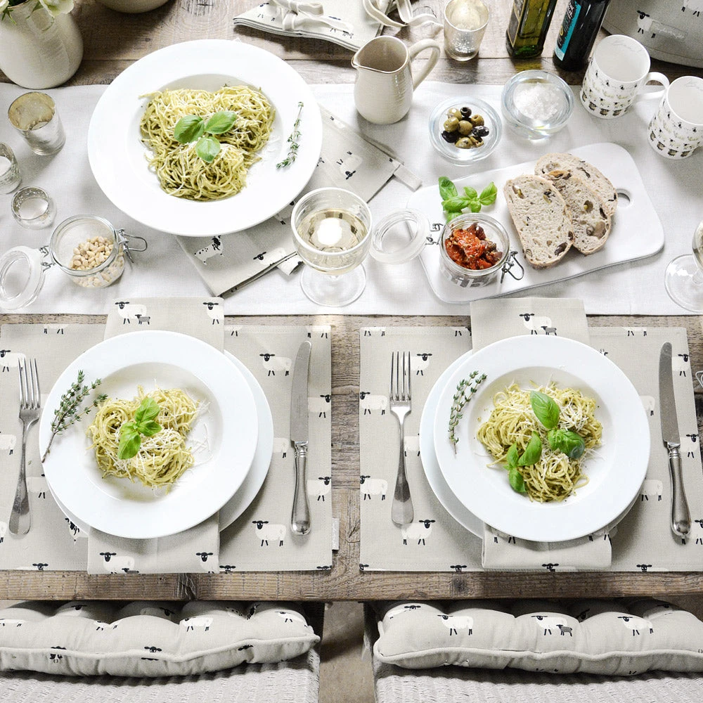 These lovely cotton napkins come in a set of four and are covered in Jacob and Suffolk Sheep on a grey coloured background. A lovely addition to any country kitchen, the Napkins are 41cm x 41cm and made from durable cotton.