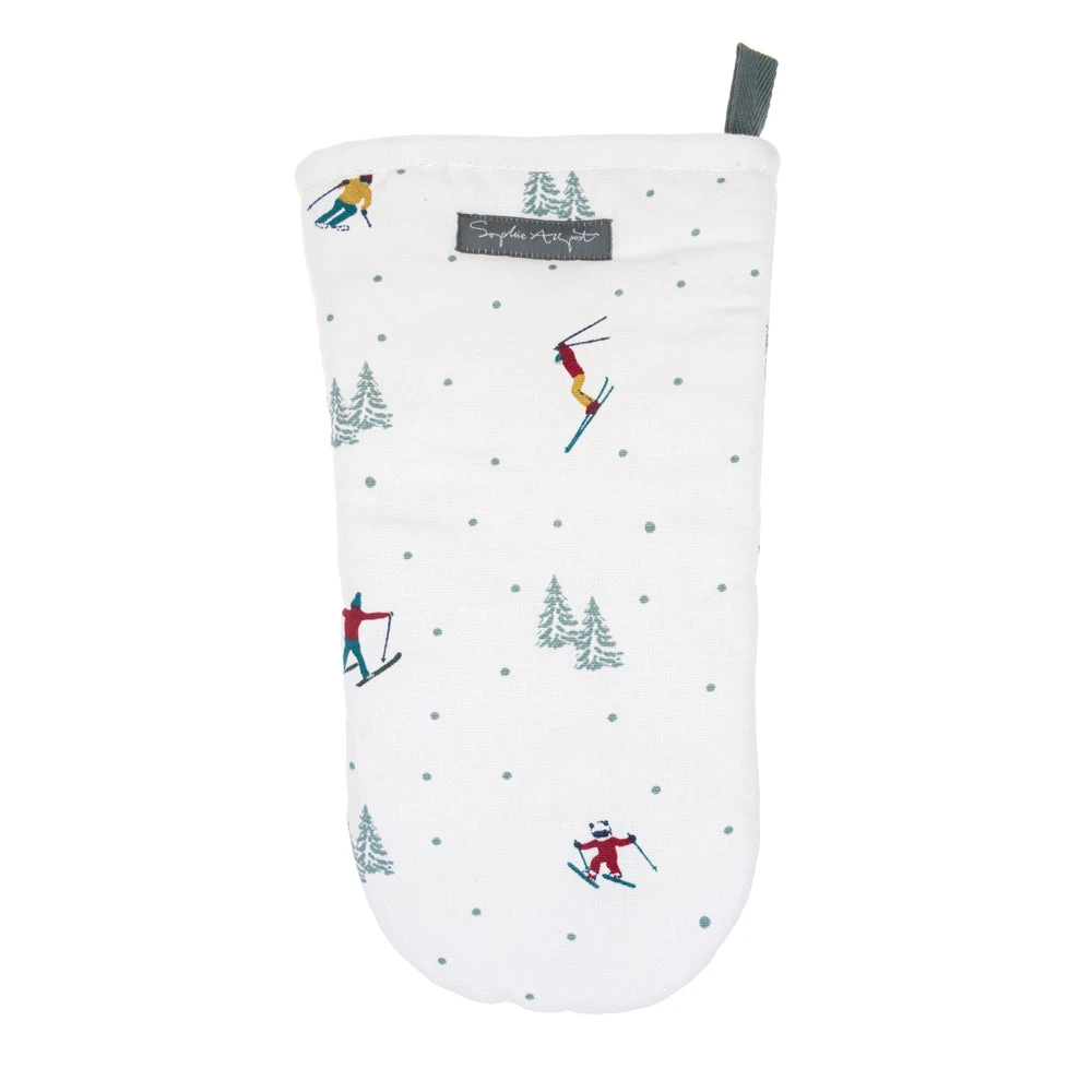 A fun design that celebrates Alpine living, snowboarders and skiers dot the mountain in colourful outfits on this oven mitt. A brilliant kitchen theme for keen skiers!