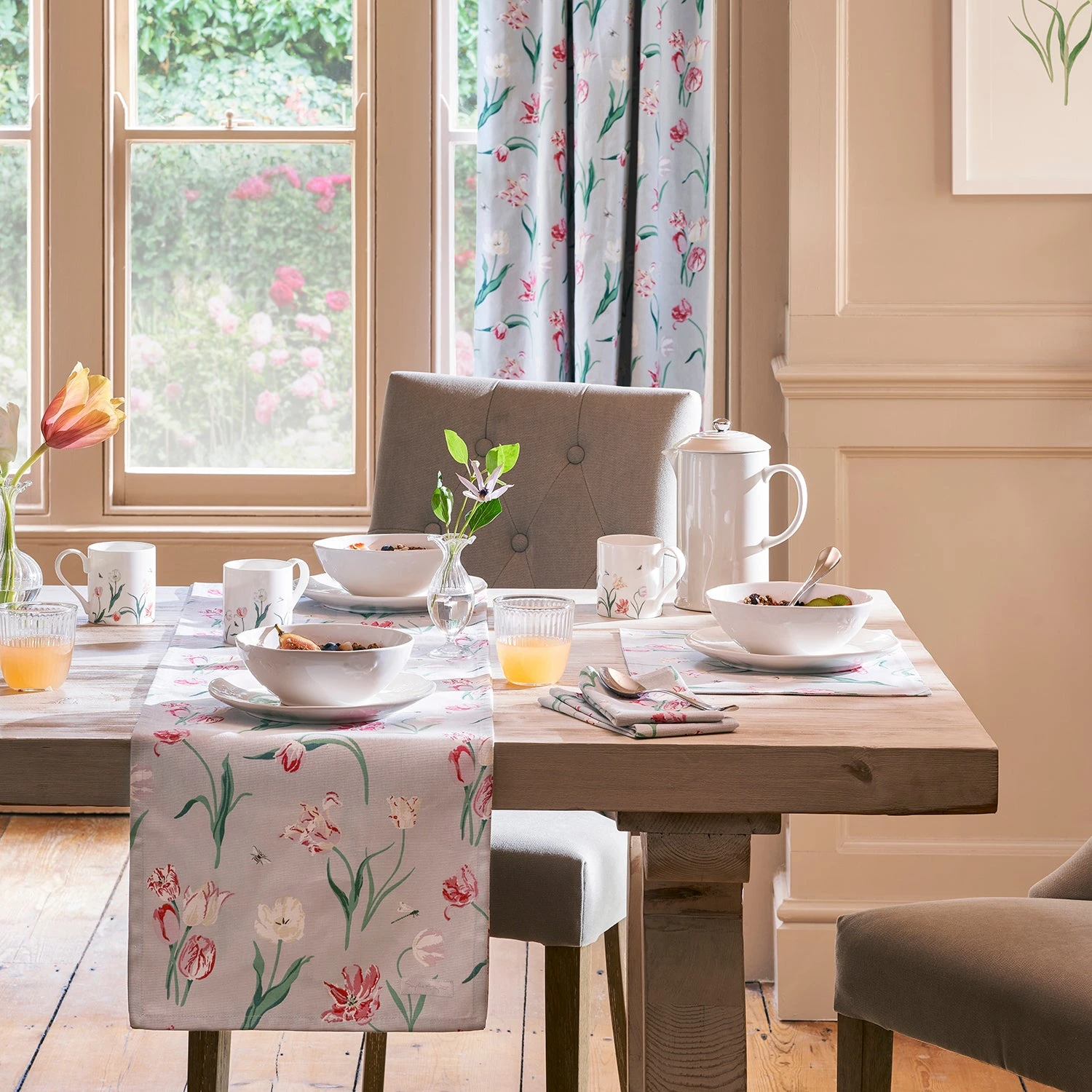Update your table setting for spring and summer with our hand drawn free flowing Tulips Table Runner, featuring Sophie’s slanting and frilly florals print. Perfect for family breakfasts, a leisurely lunch or everyday meals as well as entertaining and celebrations for all occasions. Create a co-ordinated look with other items from the collection or simply refresh your current style.