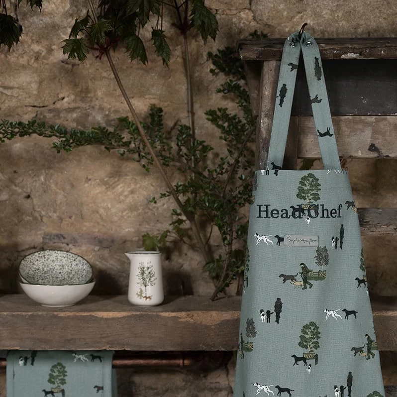 Inspired by Sophie’s love of nature and visiting National Trust parks and woodlands, this lovely adult apron is perfect for keeping your clothes free from baking mess and protecting yourself from cooking spillages. Covered in illustrations of dog walkers and hikers exploring woodlands and everything the great outdoors has to offer against a teal blue ground, it makes a stylish country statement to any kitchen.