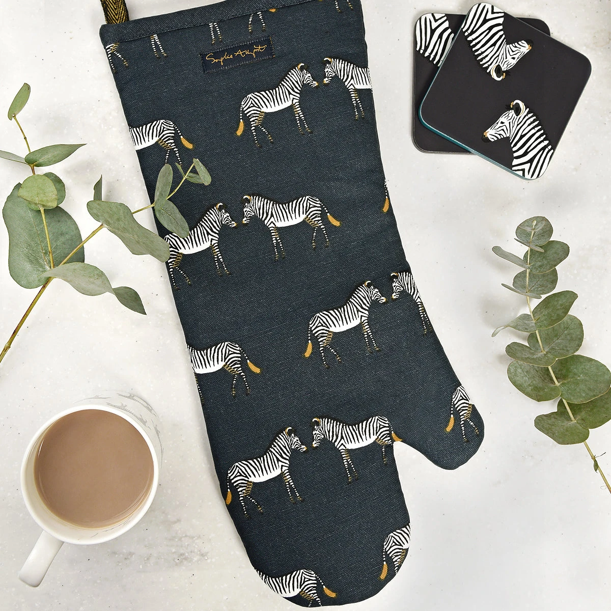 These lovely cork coasters come as a set of four and are sure to brighten up your coffee table with beautiful illustrations of these distinguished zebras, as well as keeping it free from drop drips and scratches. With a navy charcoal background and coloured edges in mustard yellow, coral pink, slate blue, and dark teal. They also come in a smart box and makes a wonderful house warming gift.